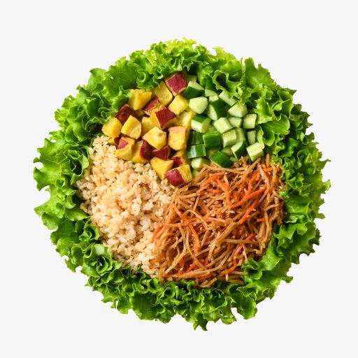 Ein japanischer Salat voller Süßkartoffeln und Naturreis.