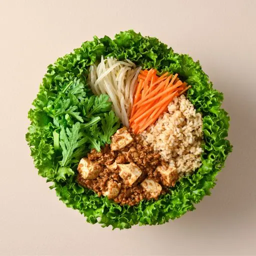 ・Shungiku (Speisechrysantheme)・Namul Bohnensprossen・Karotte・Vollkornreis・Mapo Tofu