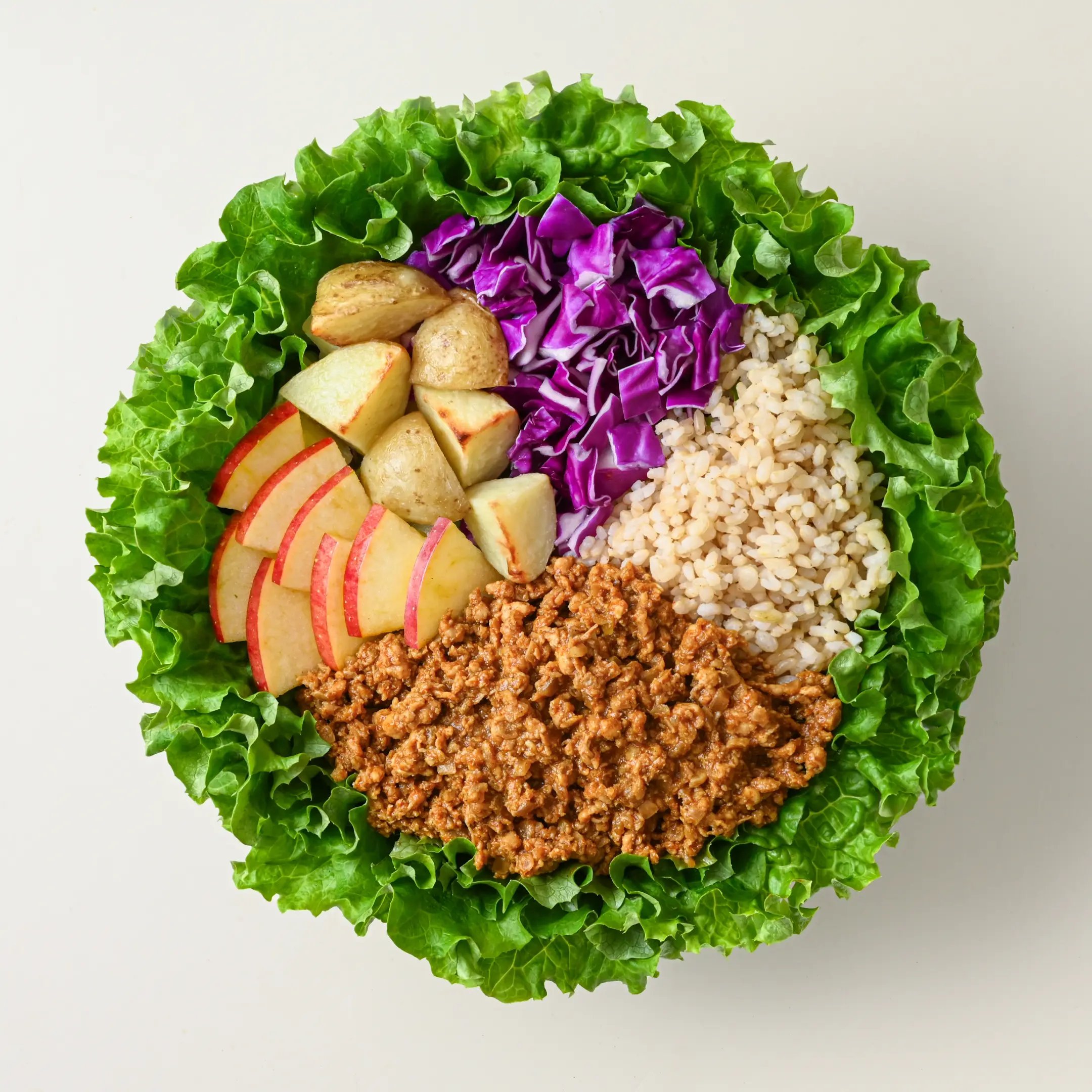 ・Apple・Grilled Potato・Purple cabbage・Brown rice・Keema Curry