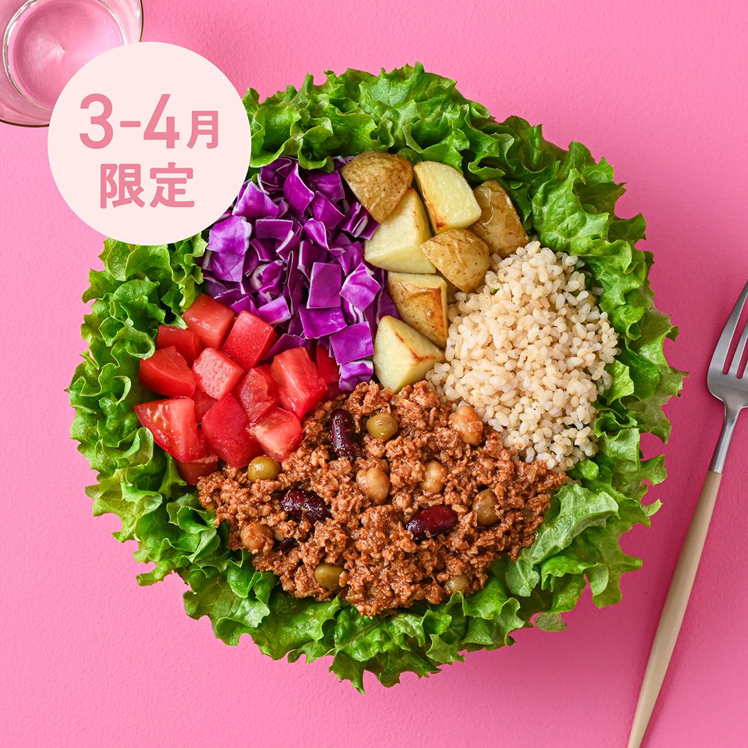 ・토마토・보라색 양배추・신감자・현미・칠리 콘 카르네