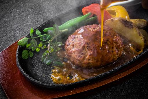 豪快で食べ応えのあるハンバーグステーキは、ランチやディナーに最適です。