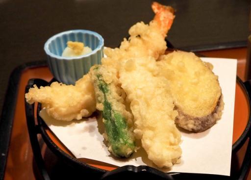 盛り合わせには、季節ごとに変わる旬の食材を使用しており、バラエティに富んだ天ぷらをお楽しみいただけます。かき揚げ、えび、いか、野菜のミックスなど、さまざまな種類の天ぷらが盛り合わせられています。